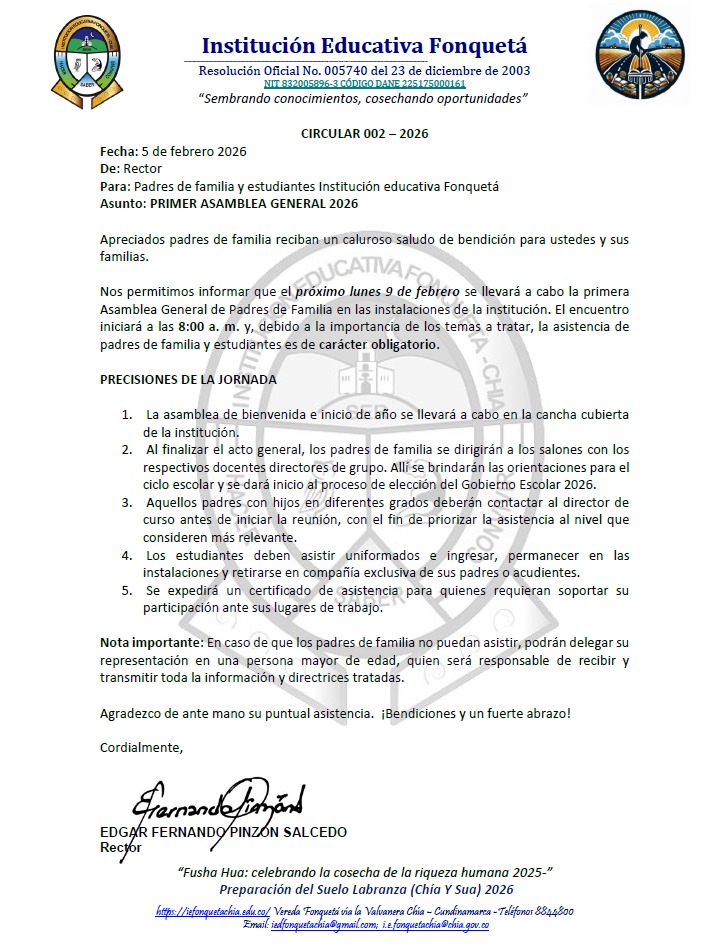 CONTACTO: 0318624057 Correo Electrónico Institucional Jose.Bedoya@iefonquetachia.edu.co y coordinacioniedfonqueta@gmail.com